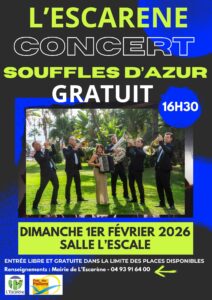 Concert « Souffles d’Azur » – Dimanche 1er février 2026 – 16h30 – Salle L’Escale