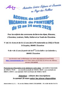 Inscriptions – Association ALEJ- vacances de Printemps 2026