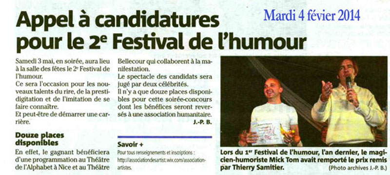 Appel à  candidatures pour le 2ème Festival de l’humour
