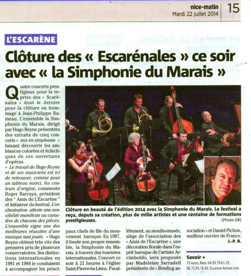 Clôture des « Scarenales’ ce soir avec la « Simphonie du Marais »