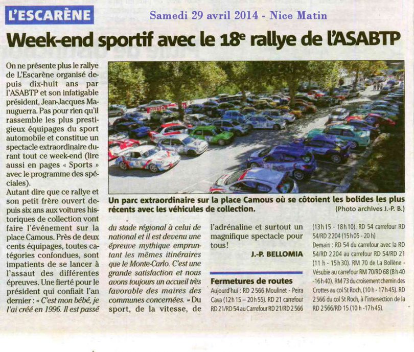 Week end sportif avec le 18ème rallye de L’Escarène