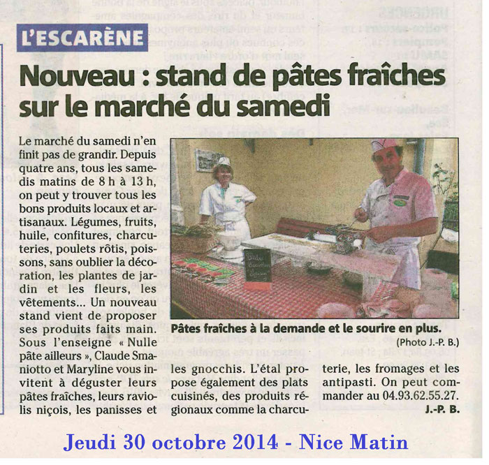 Nouveau : stand de pâtes fraîches sur le marché du samedi