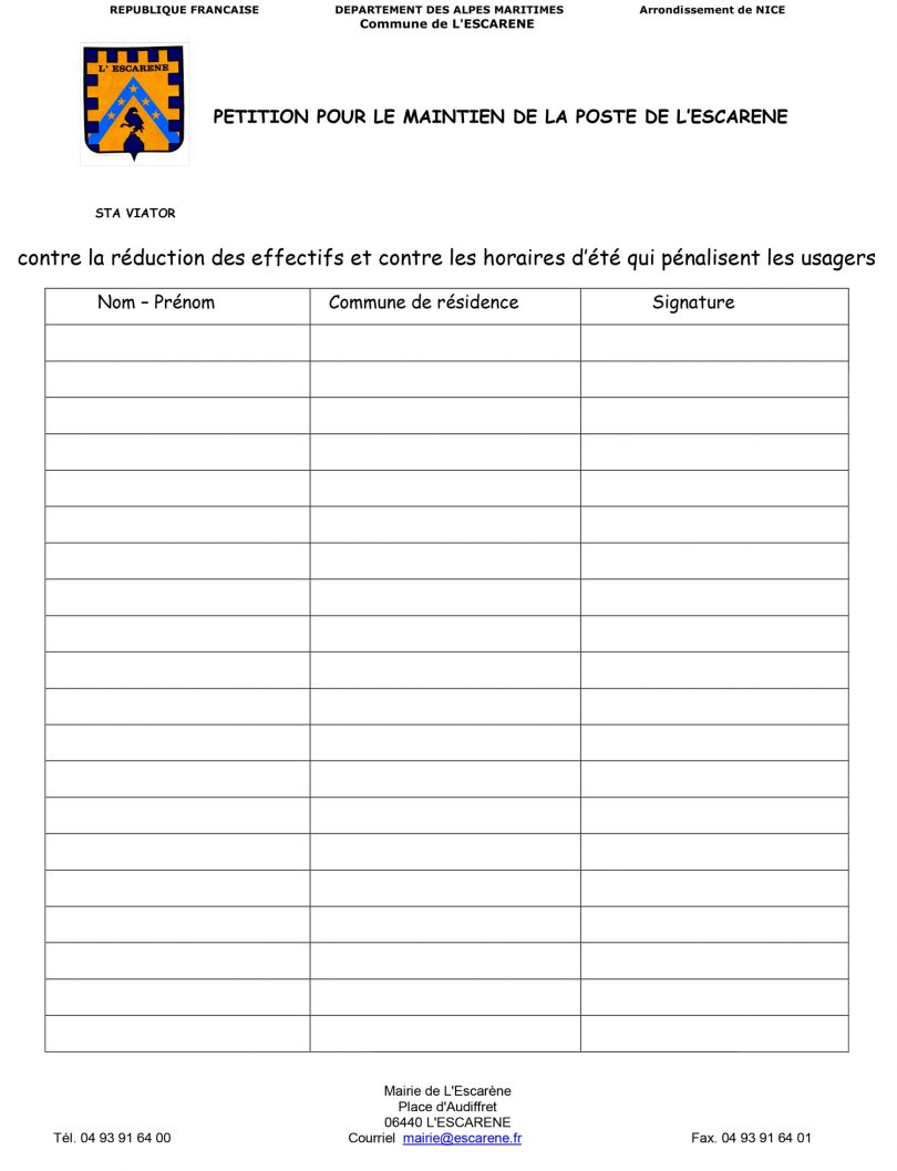 PETITION POUR LE MAINTIEN DE LA POSTE DE L’ESCARENE