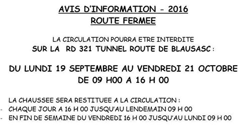 AVIS D INFORMATION- 2016 – ROUTE FERMÉE