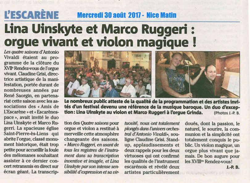 Lina Uinskyte et Marco Ruggeri : orgue vivant et violon magique !