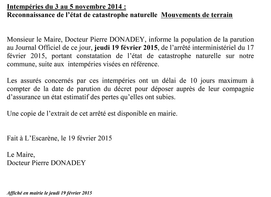 • Arrêté de catastrophe naturelle du 28 novembre 2019