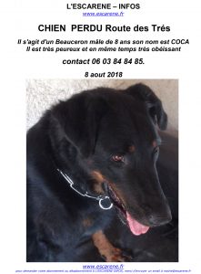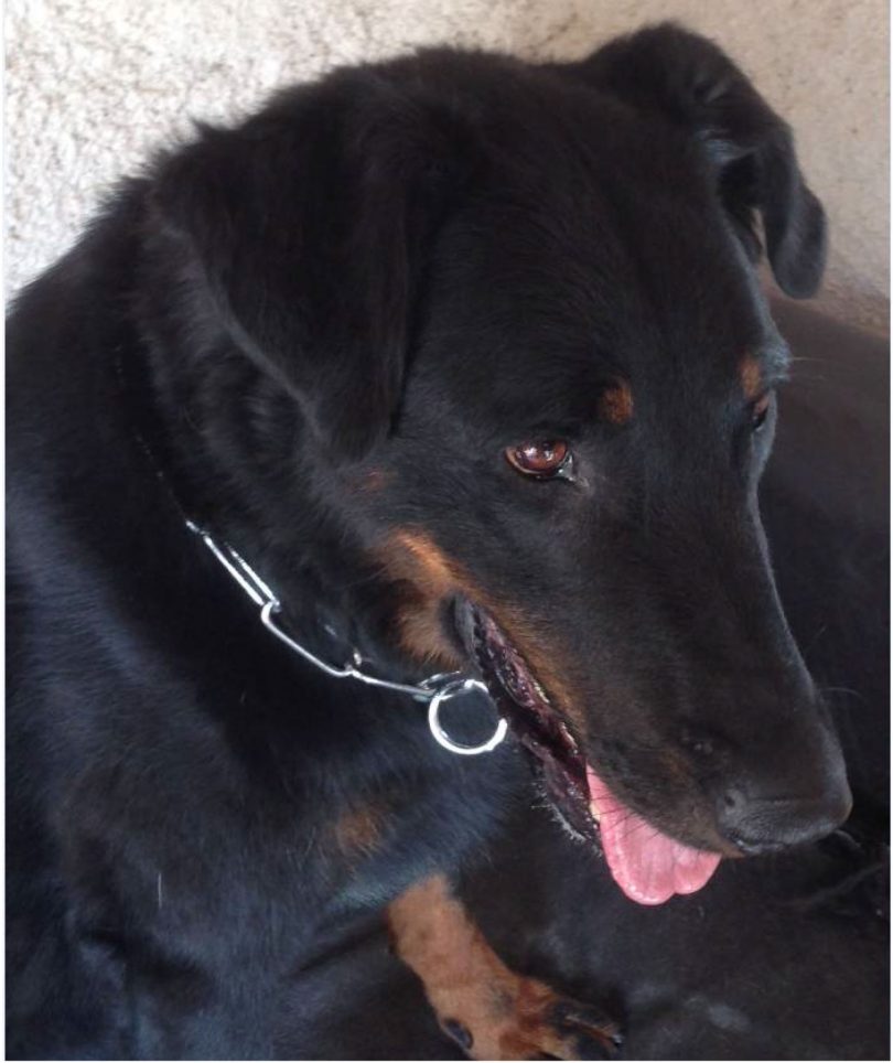 Il s’agit d’un Beauceron mâle de 8 ans son nom est COCA