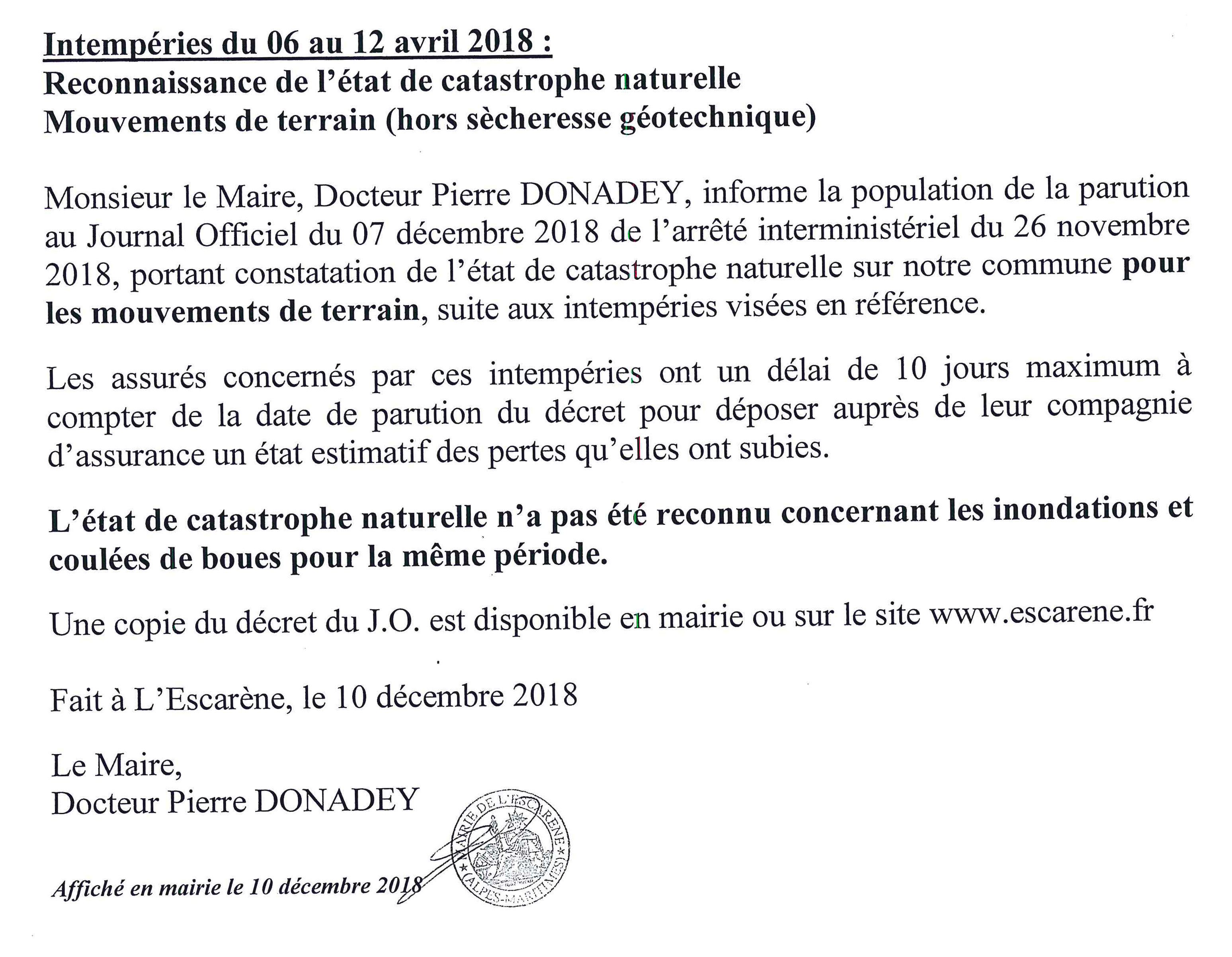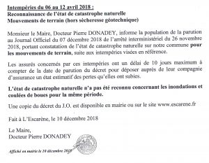 Arrêté catastrophes naturelles du 26 novembre 2018