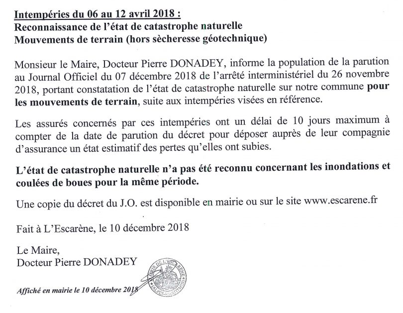 • Arrêté de catastrophe naturelle du 28 novembre 2019