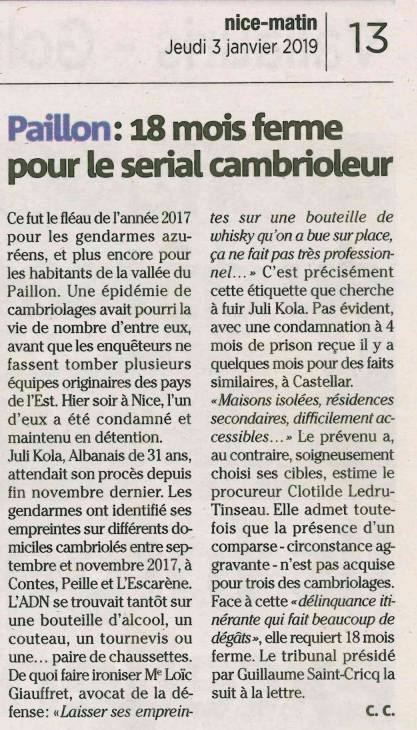 Paillon : 18 mois de prison ferme pour le serial cambrioleur