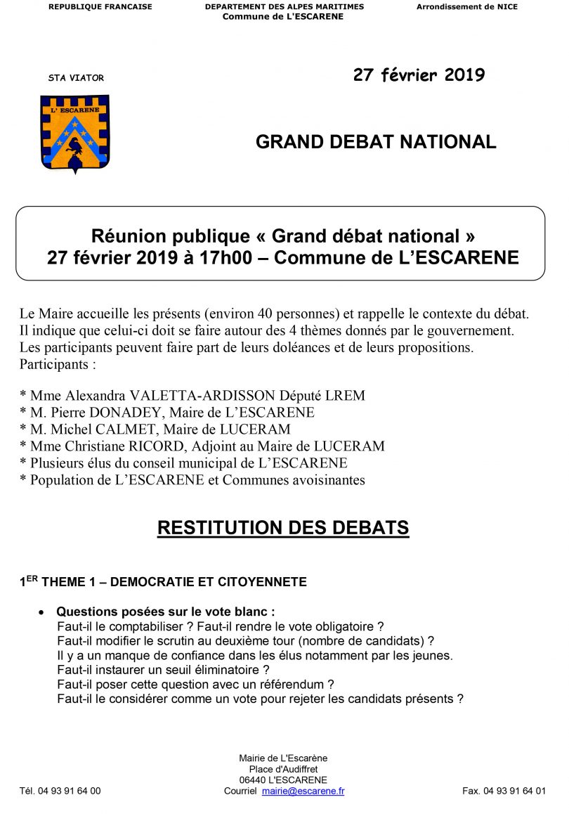 Compte rendu – Débat sur L’ESCARENE du 27 février 2019