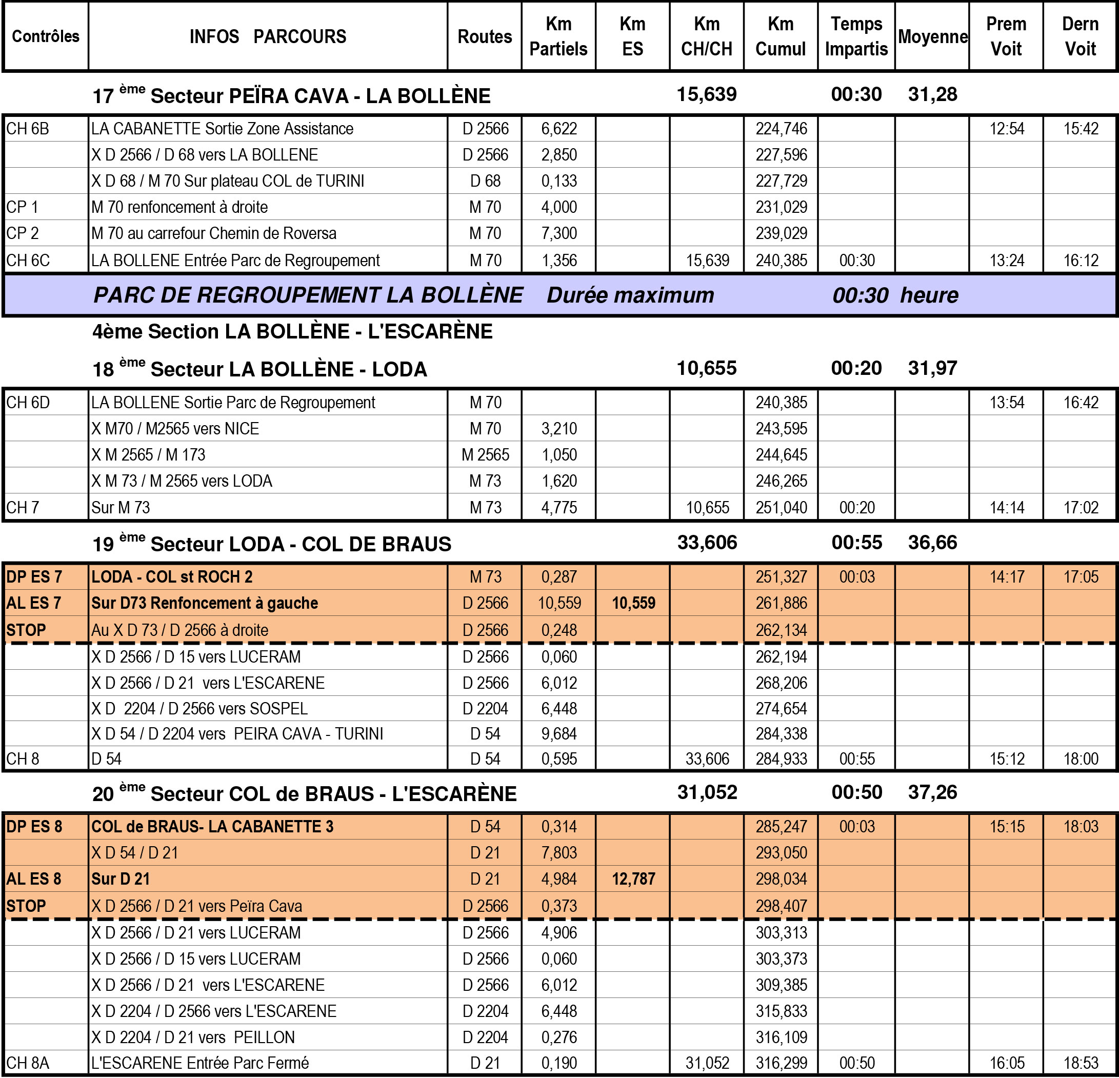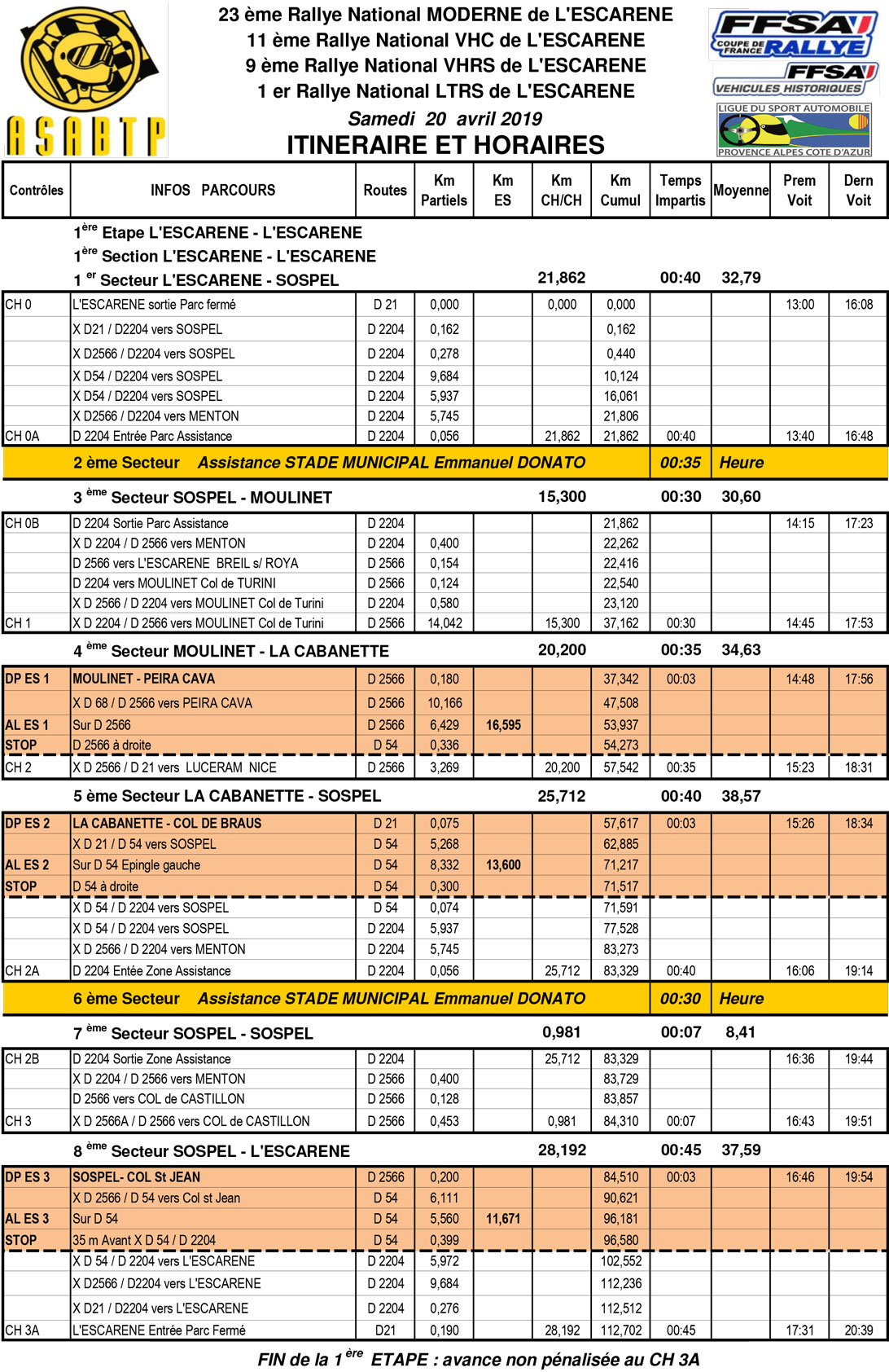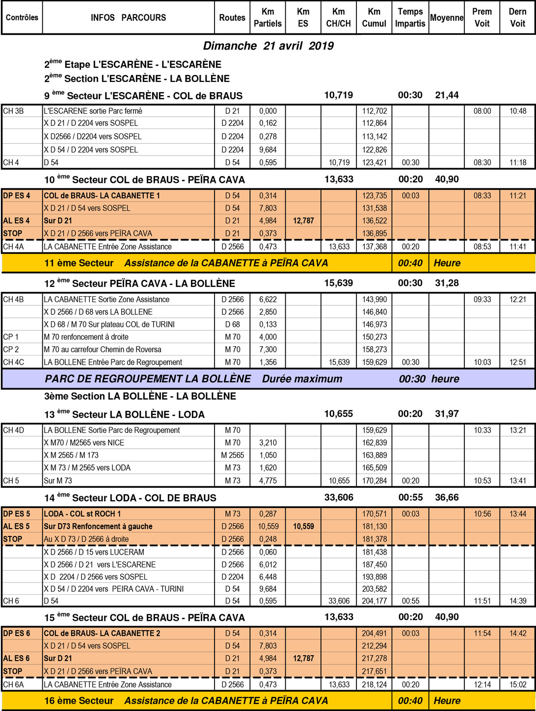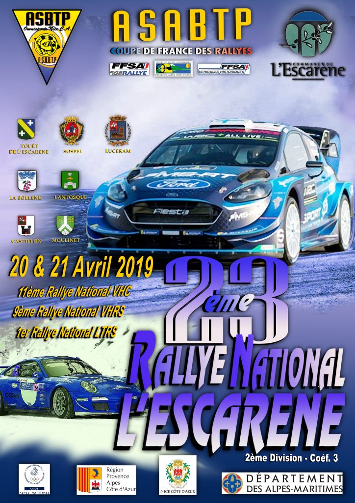 Cartes, itinéraire et horaires du 23ème rallye de L’Escarène du samedi 20 et dimanche 21 avril 2019 – ASABTP
