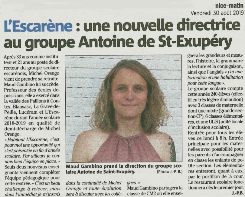 L’Escarène : une nouvelle directrice pour le groupe Antoine de St Exupery