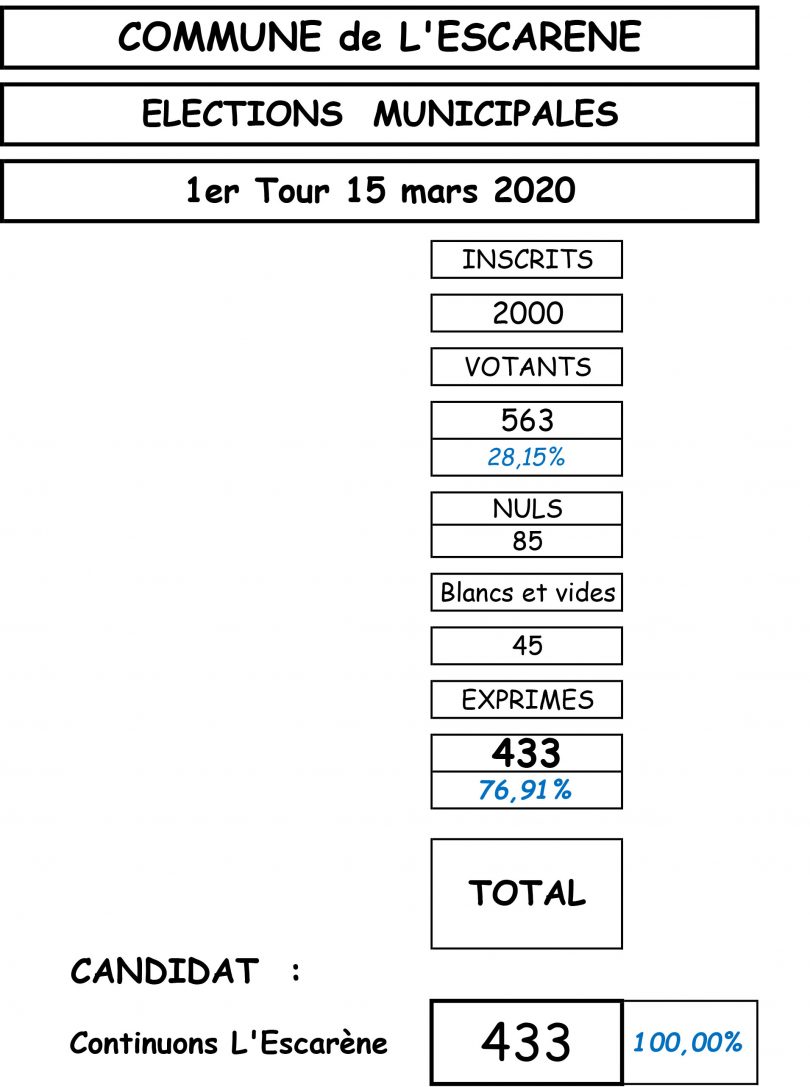 Résultats 1er Tour Municipales 15 mars 2020