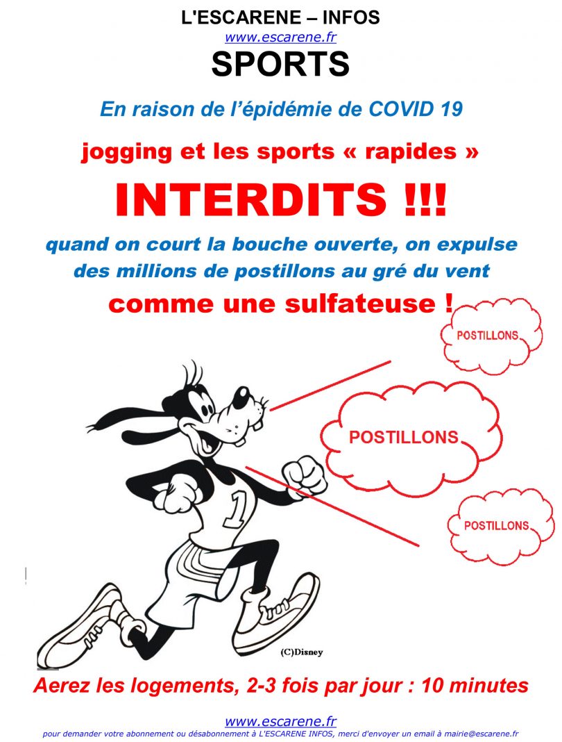 En raison de l’épidémie de COVID 19 – Jogging et les sports « rapides » INTERDITS !!!