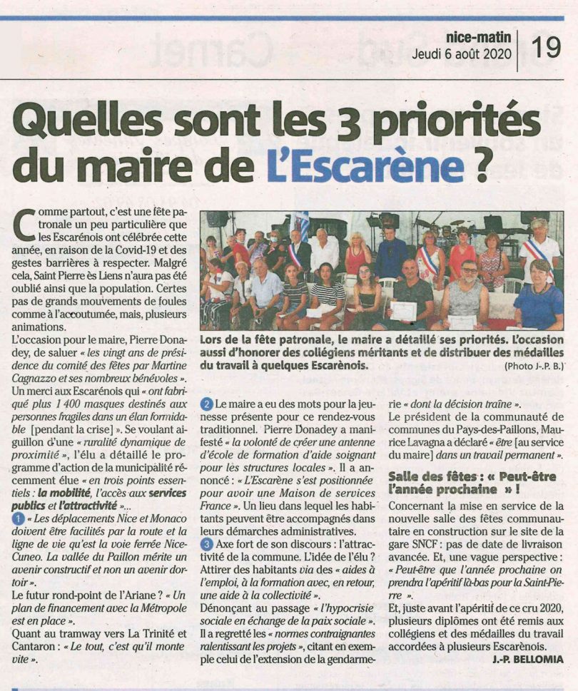 Quelles sont les 3 priorités du Maire de L’Escarène ?