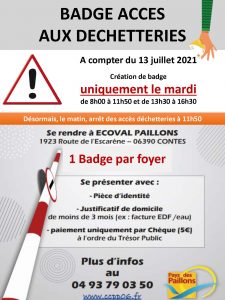 /!\ Badge accès aux déchetteries – Uniquement le mardi
