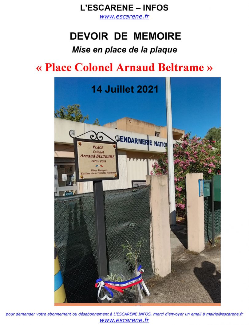DEVOIR DE MEMOIRE – Mise en place de la plaque « Place Colonel Arnaud Beltrame »