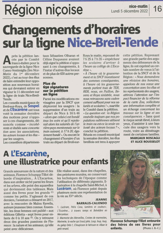 Changements d’horaires sur la ligne Nice- Breil – Tende – A L’Escarène, une illustratrice pour enfants