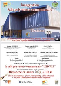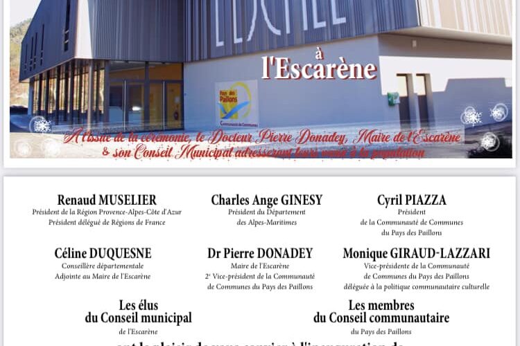Invitation Inauguration salle Communautaire L’ESCALE – Voeux du Dr Pierre Donadey, Maire de L’Escarène – Dimanche 29 janvier 2023