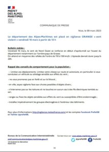 Vigilance ORANGE « Vent Violent » – Vendredi 10 mars 2023 de 13h à 20h