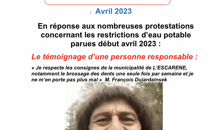 Réseau eau potable – Témoignage – Avril 2023 >>> suite à divers appels !!!