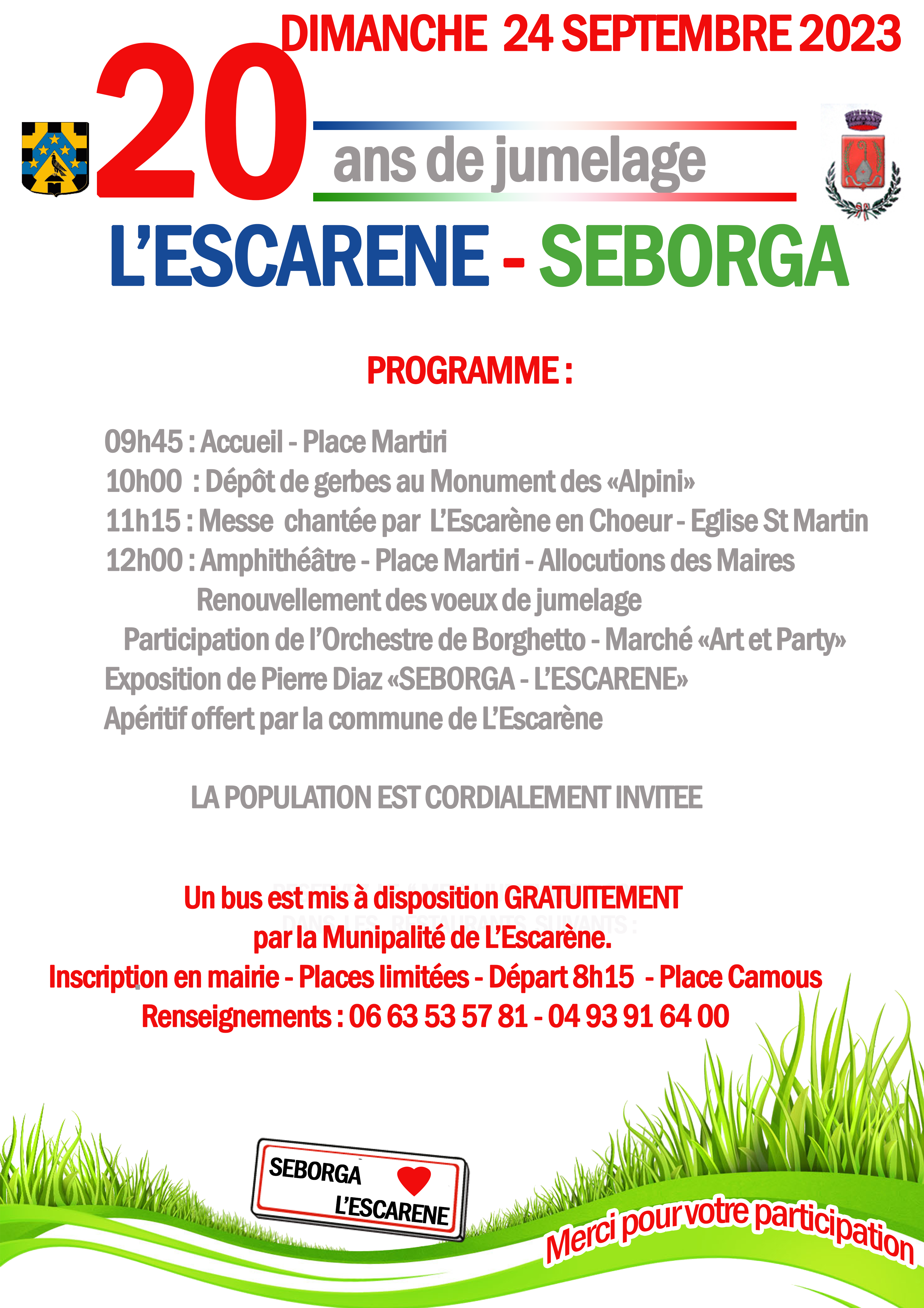 20ème anniversaire de jumelage – Dimanche 24 septembre 2023 à Séborga