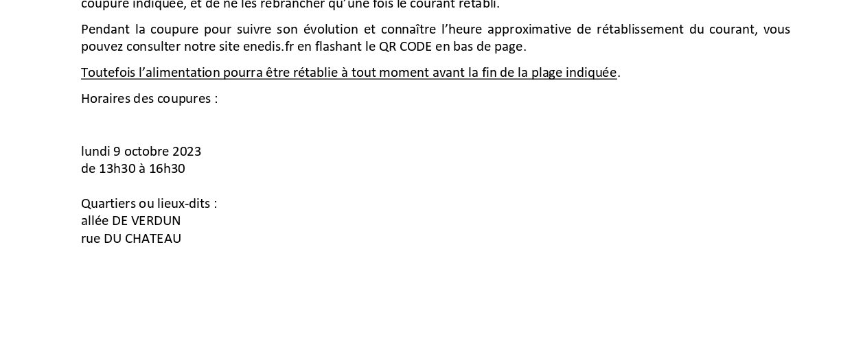 Enedis communique : coupure de courant pour travaux