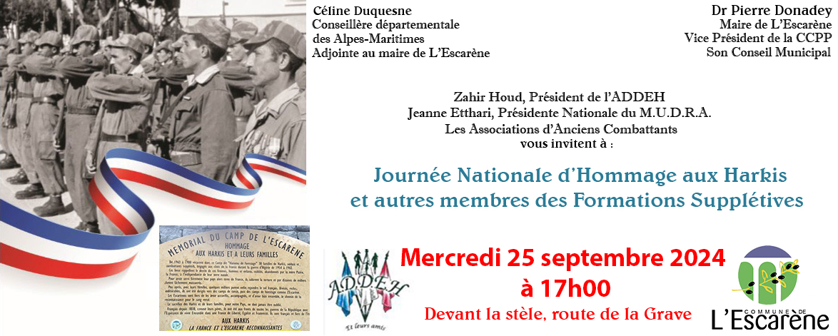 Commémoration de la « Journée d’Hommage aux Harkis » Mercredi 25 septembre 2024 – 17h – Stèle route de la Grave