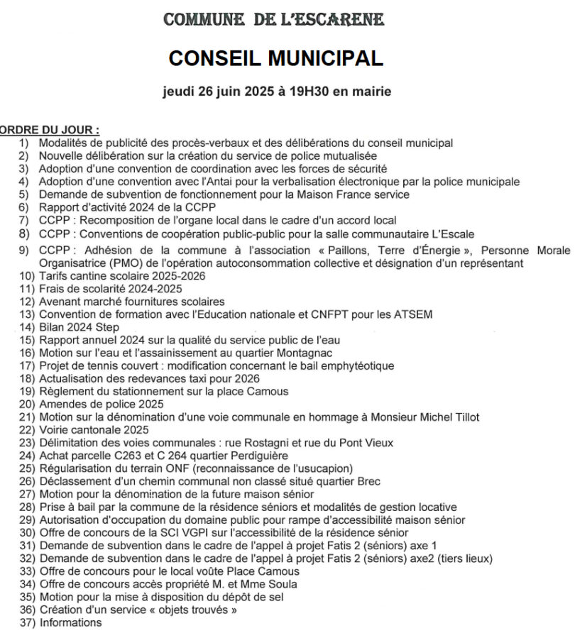 Conseil Municipal – Ordre du jour – 2025-06-25