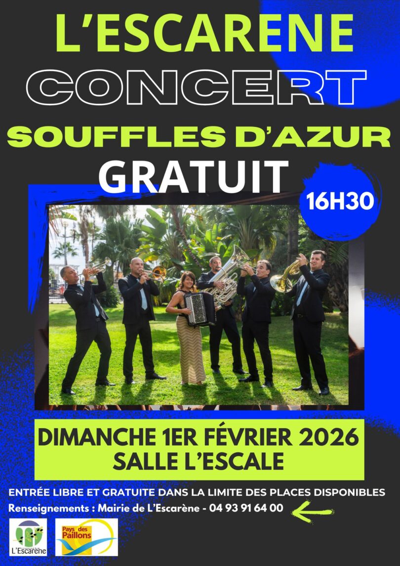 Concert « Souffles d’Azur » – Dimanche 1er février 2026 – 16h30 – Salle L’Escale