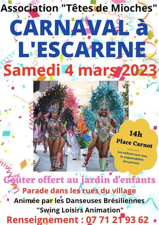 Carnaval à L’Escarène – Samedi 4 mars 2023 – Organisé par l’association « Têtes de Mioches »