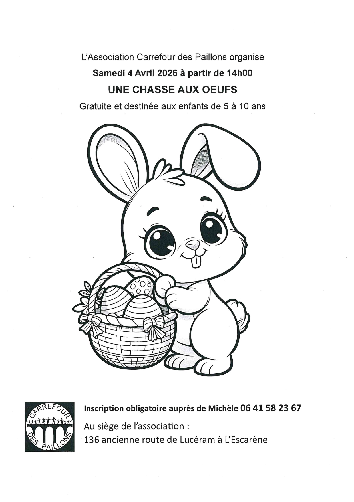 Chasse aux oeufs Gratuite – Carrefour des Paillons – Samedi 4 avril 2026
