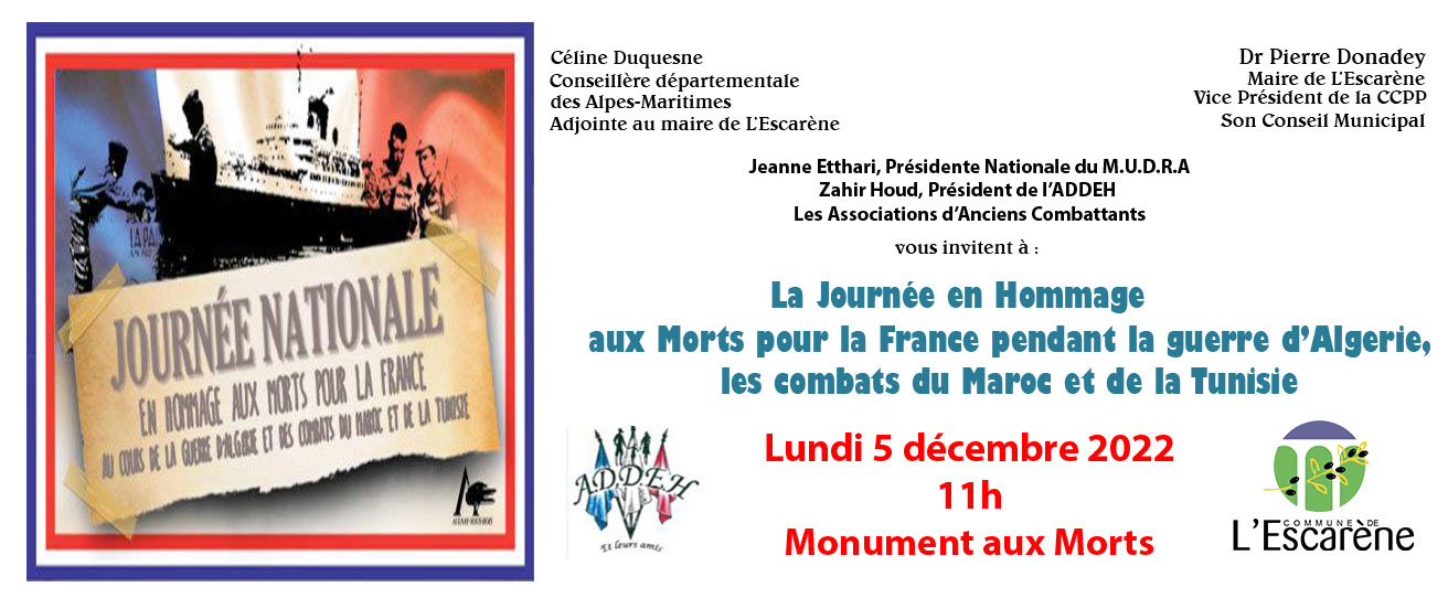 Commémoration du 5 décembre 2022 – 11h – Monument aux Morts