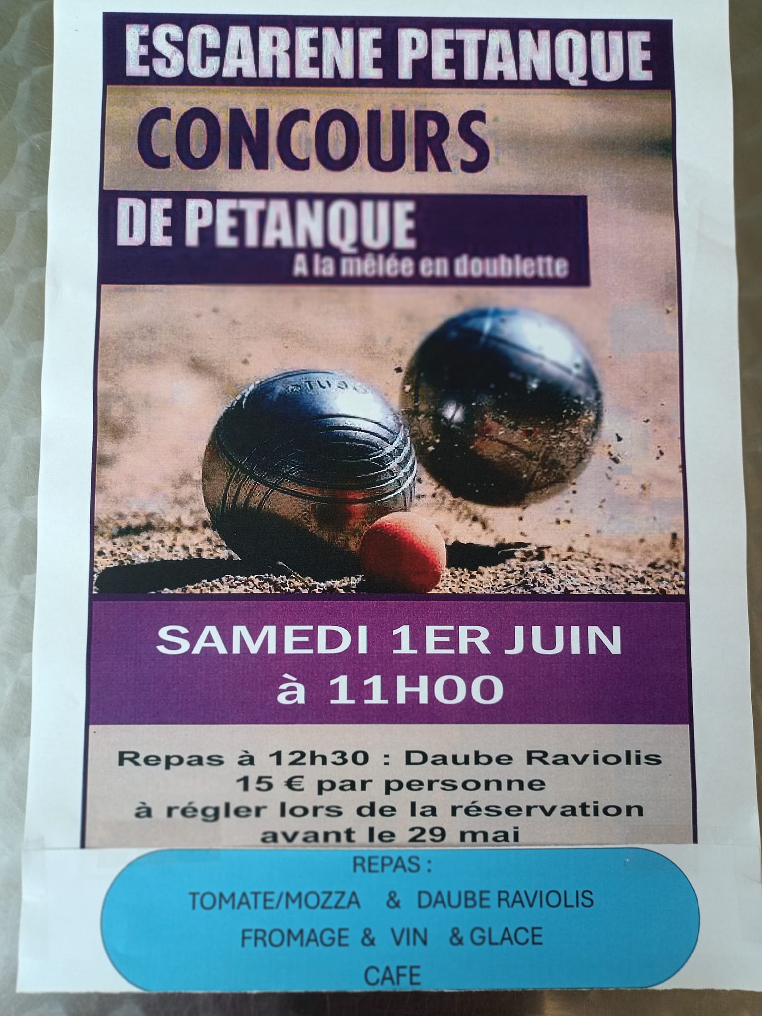 Concours de pétanque à la mélée – Samedi 1er juin à 11h – Clos de boules