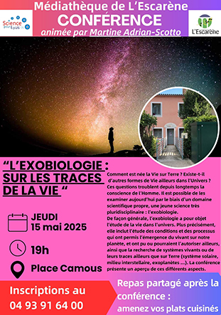 Conférence médiathèque – Jeudi 15 mai 2025 – 19h – « L’exobiologie sur les traces de la vie »