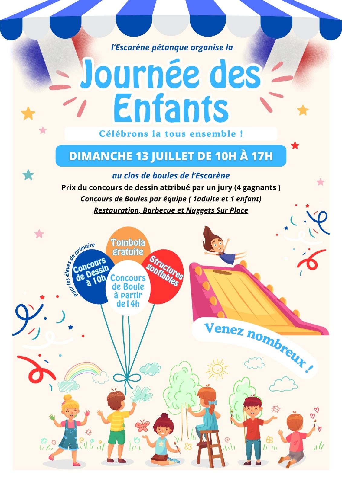 Escarène Pétanque organise la Journée des enfants – Dimanche 13 juillet 2025 – 10h à 17h – Clos de boules