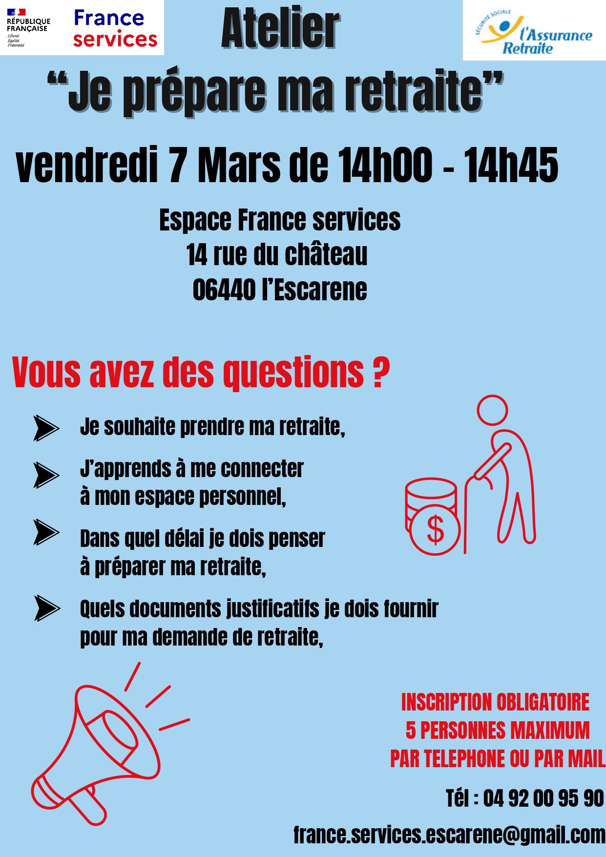 France services – « Je prépare ma retraite » Vendredi 7 mars – Inscriptions OBLIGATOIRES