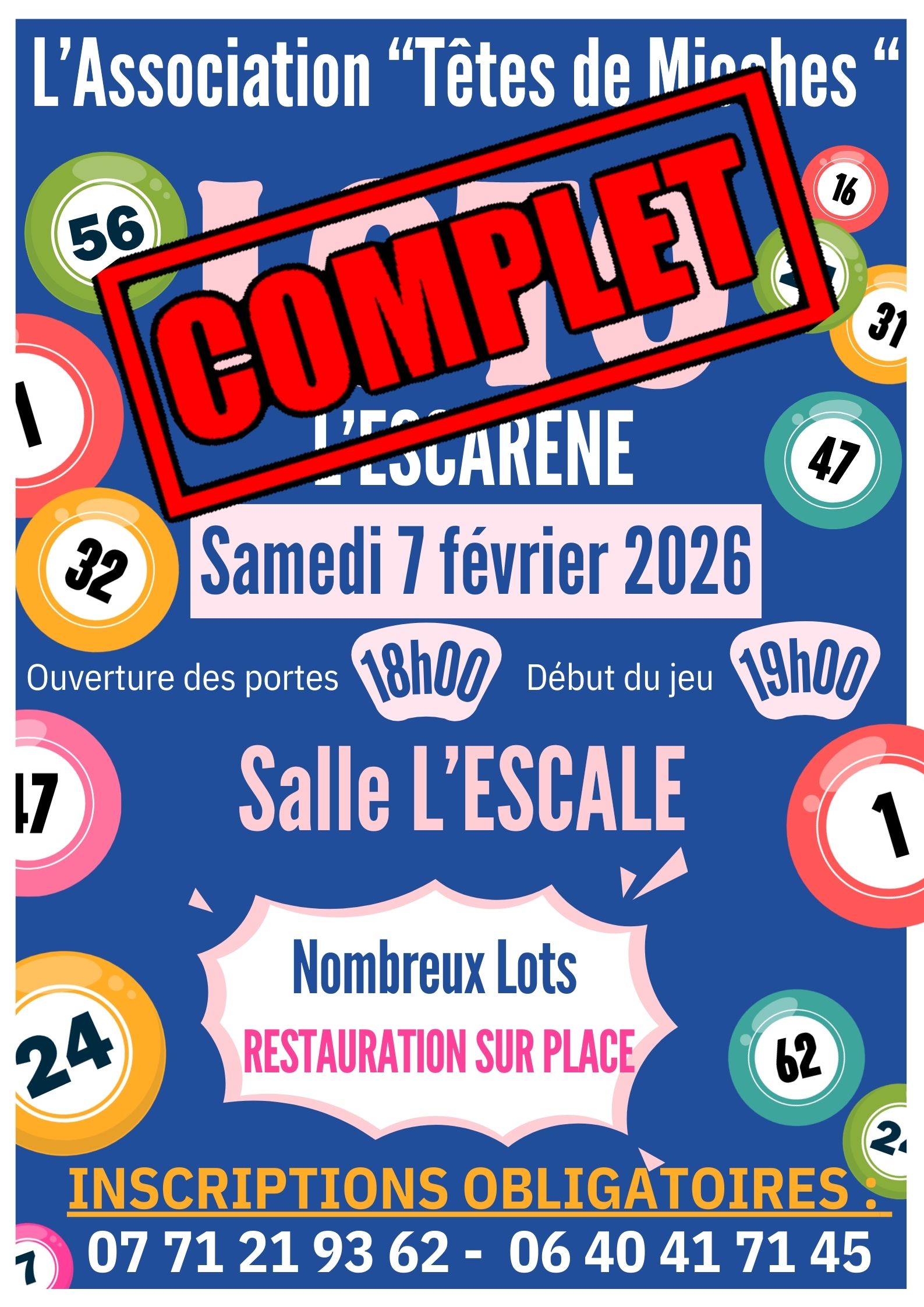 Grand LOTO de l’association « Têtes de Mioches » Samedi 7 février 2026 – Salle L’Escale