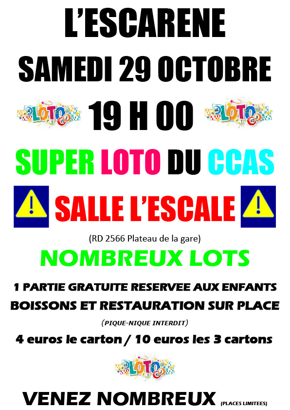 GRAND LOTO DU CCAS – SALLE L’ESCALE – SAMEDI 29 OCT – 19H