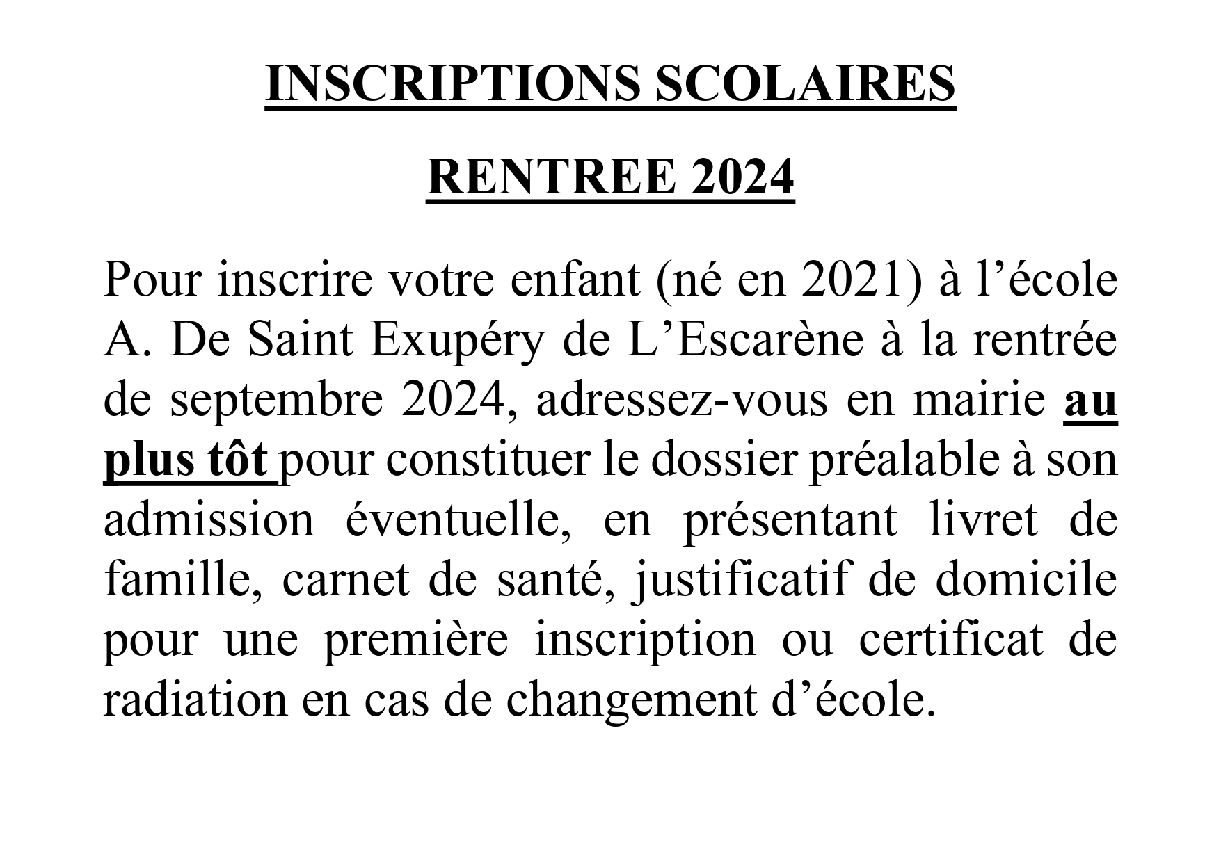 Inscription scolaire année 2024 – Ecole A. de St Exupery
