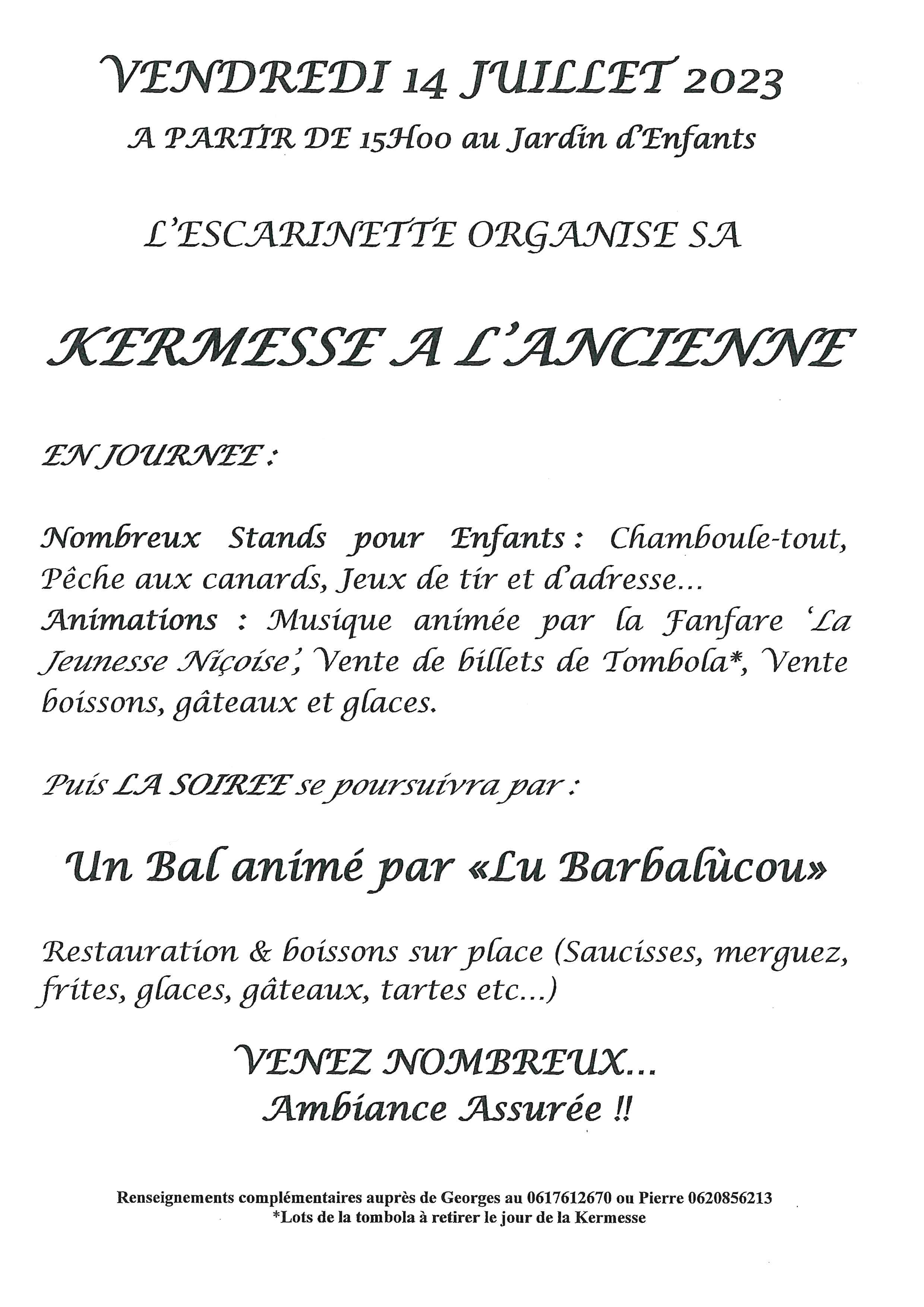 Kermesse d’Antan – Vendredi 14 juillet à partir de 15h – Jardin d’enfants