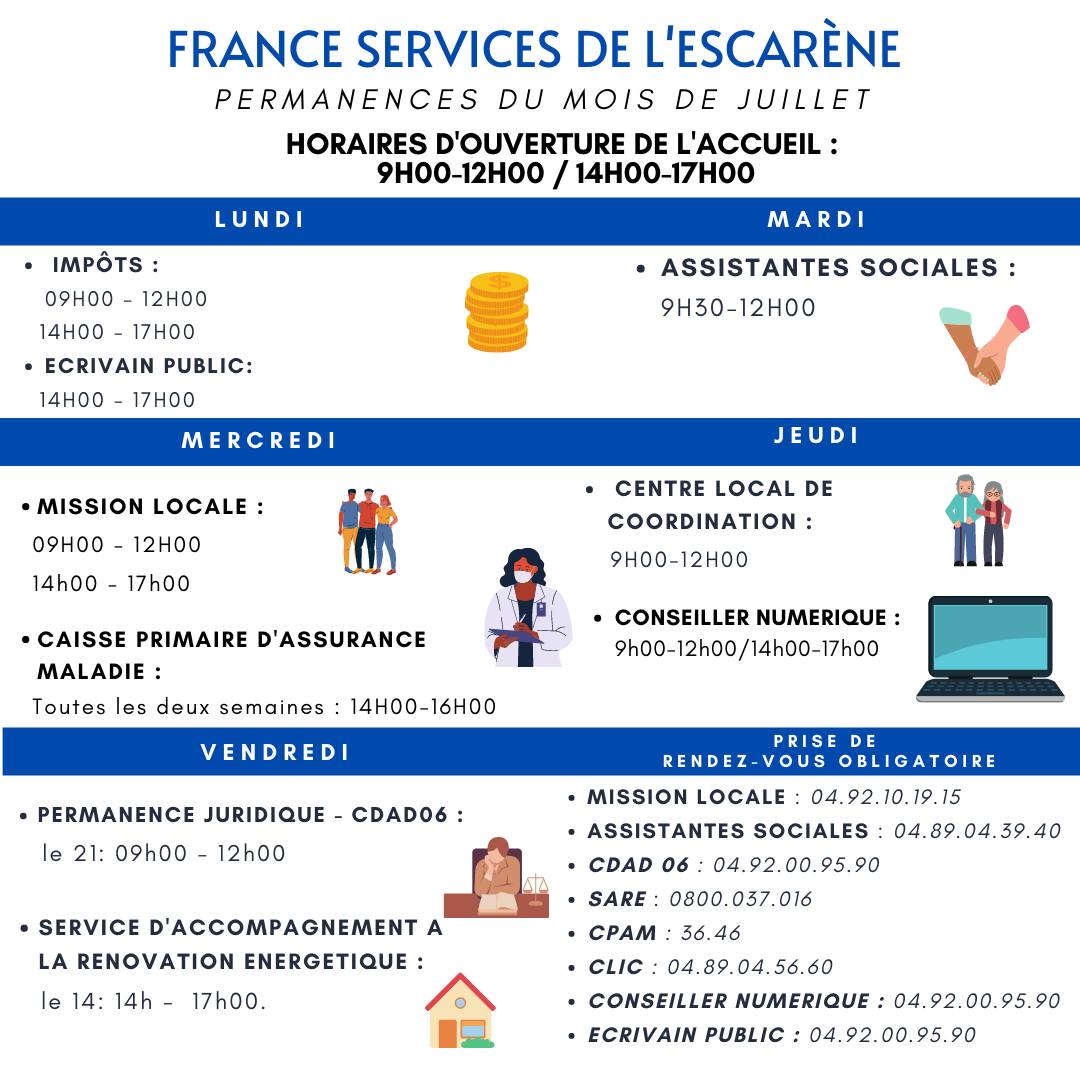Permanences du mois de juillet – France Services de L’Escarène