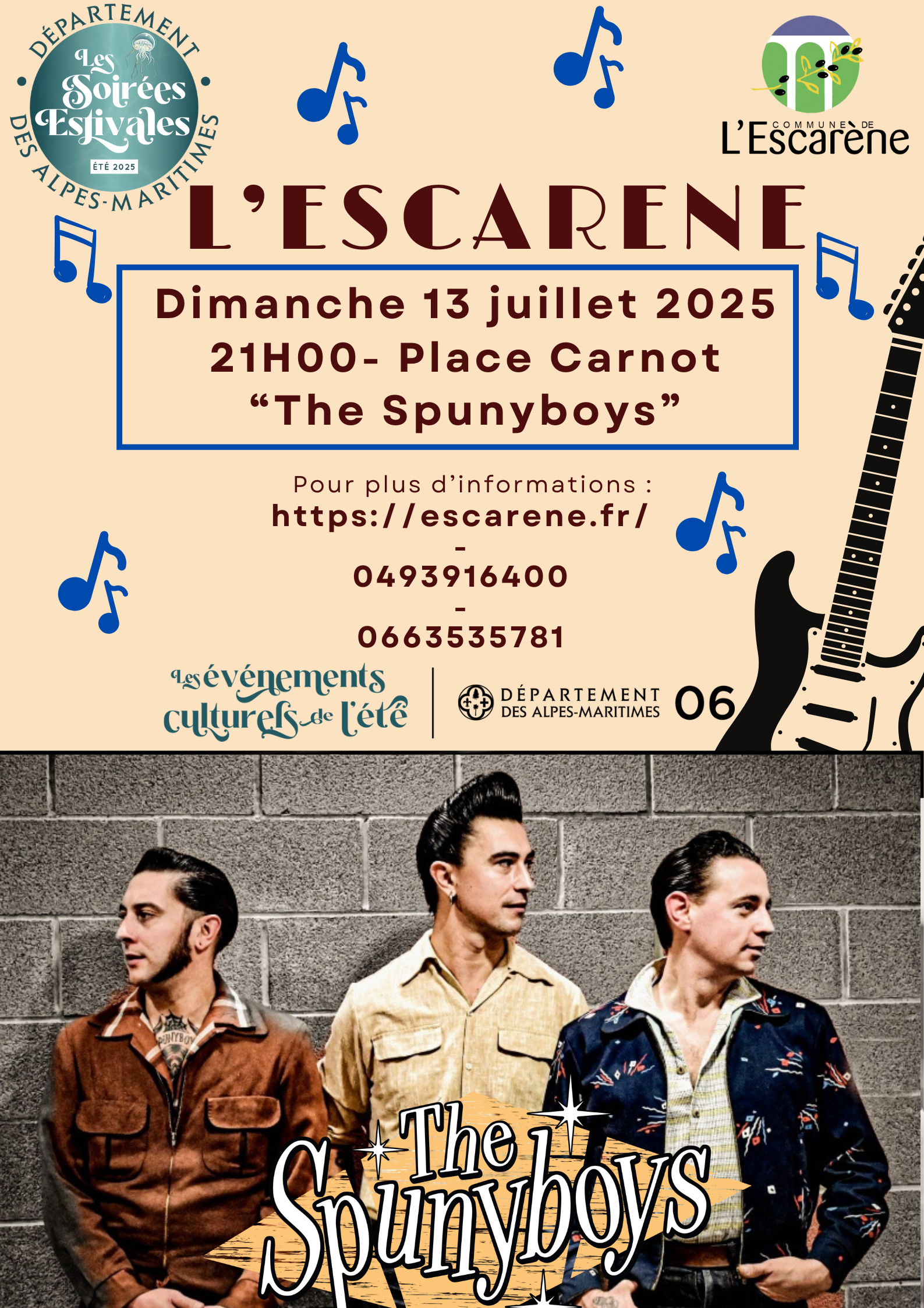Soirées Estivales 06 – Dimanche 13 juillet 2025 – 21h – Place Carnot – « Spuny Boys »
