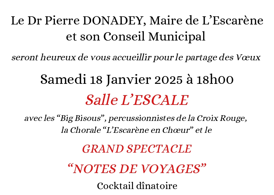 Voeux de la Municipalité – Samedi 18 janvier 2025 – 18h – Salle L’Escale